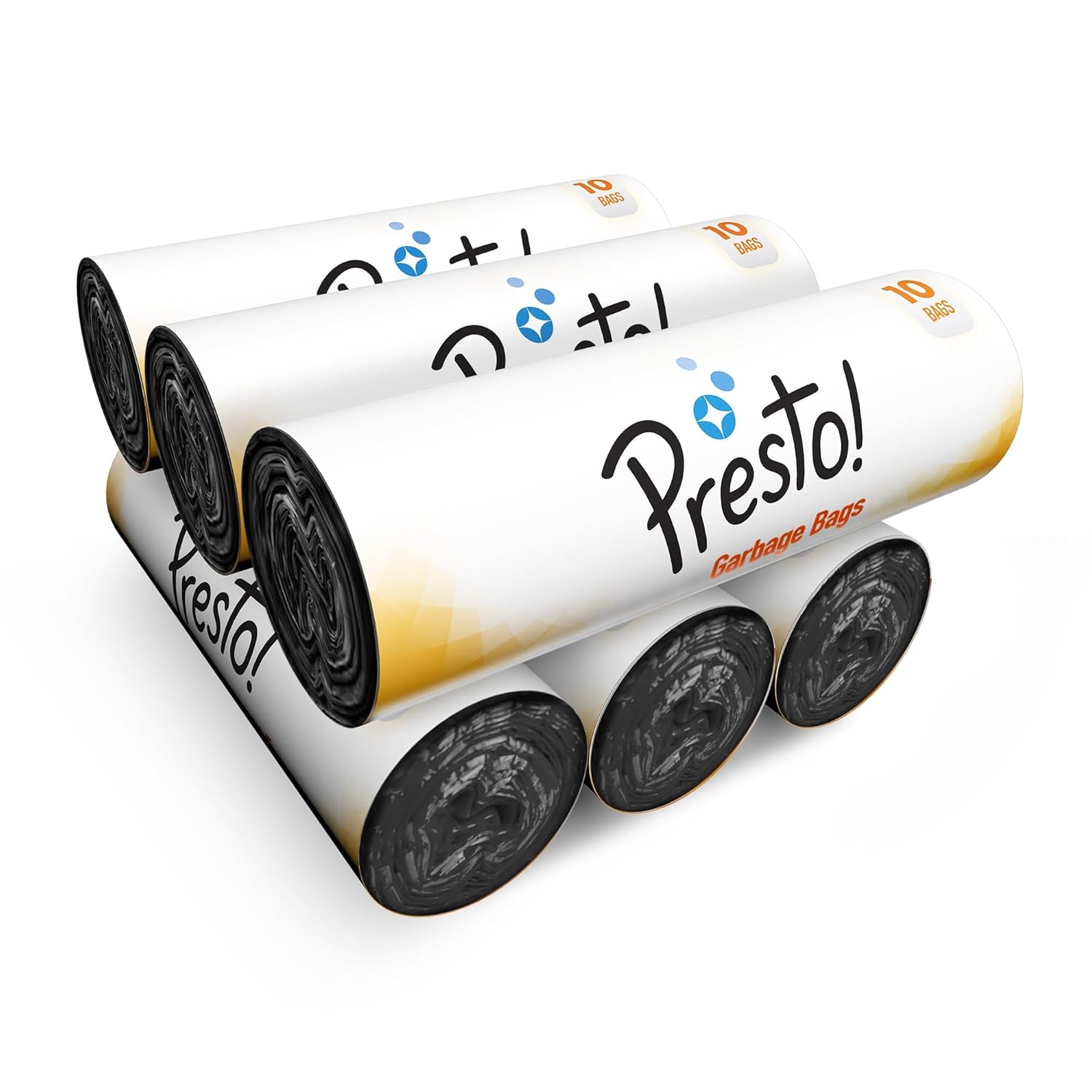 Amazon Brand – Presto! Garbage Bags | Extra Large XL | 30 x 37 in | 60 Count | 10 Bags x 6 Rolls | For Dry & Wet Waste | Black