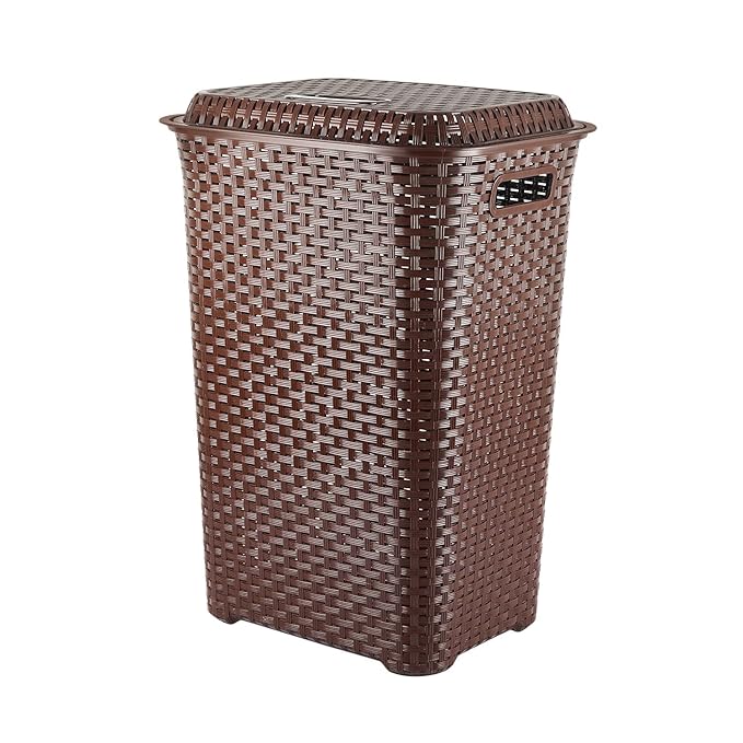 Cello Eliza Plastic Laundry Basket with Lid, Dark Brown, 50 Ltrs | Lightweight and Portable | Storage Organizer | Convenient Handling | Useful For Storing Clothes, Toys, Books