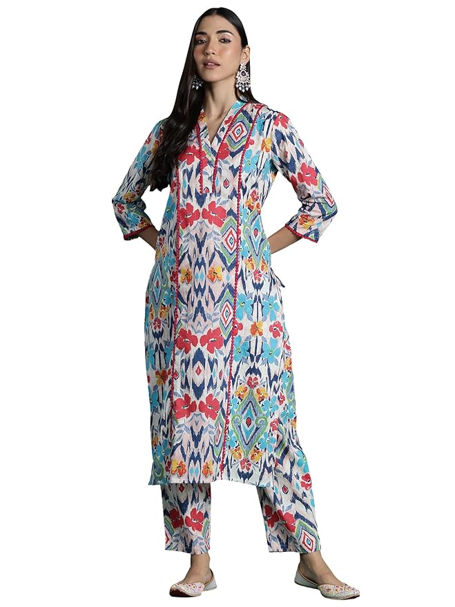 INDO ERA Women’s Pure Cotton Printed Straight Kurta & Pant Set (KS0ML9721)