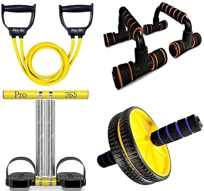 PRO365 Home Gym Equipment Full Set | 4 Pack | Tummy Trimmer | Pushup Bar | Toning Tube | Abdominal Ab Wheel Exerciser