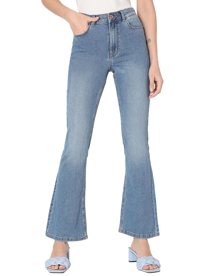 VERO MODA Women Bootcut High-Rise Light Fade Stretchable Jeans
